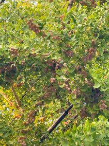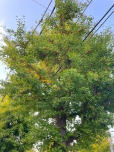 先日、買い物帰りにふと見上げるとイチョウの街路樹に鈴なりのぎんなんがなっていました。