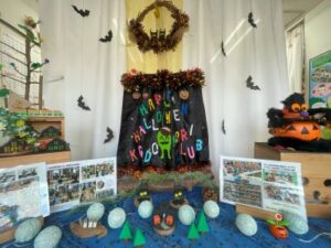 こどもりクラブ事務所の店頭ディスプレイを変更しハロウィンの物でいっぱいにしました。