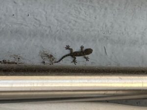 恐る恐る確認すると、5cmくらいの赤ちゃんヤモリでした。