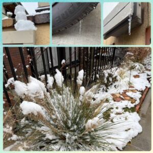 車のタイヤや表札の角など、いろいろなところに小さなツララもできていました。