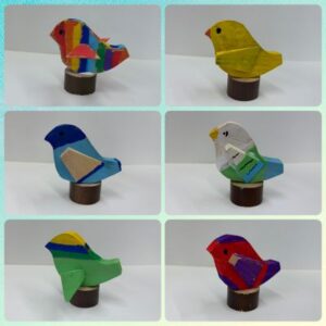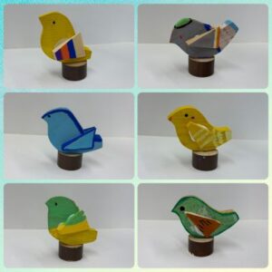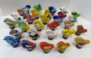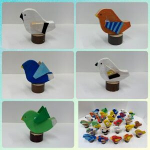 色の違いはもちろん、小鳥の木っ端や羽をどんな角度でつけるかでいろんな表情のハッピーバードが完成しました。