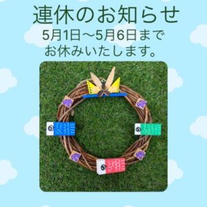 お休み中にいただいたお問い合わせにつきましては、5月7日(木)以降に順次対応させていただきます。 ご了承ください。
