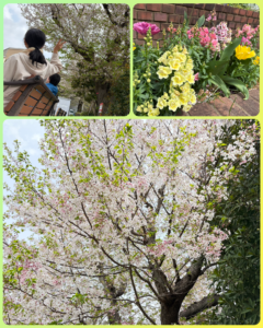 風でヒラヒラと舞う桜の花びらもキレイでしたが、他にも色とりどりの花が咲いていてほんのり花の香りが香ってきて春を満喫できました。